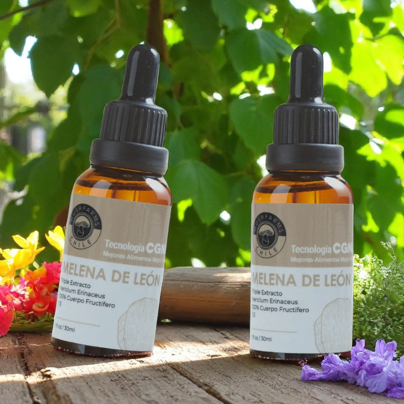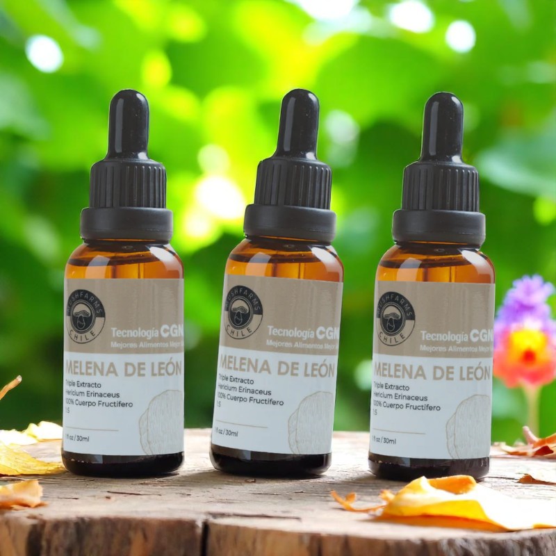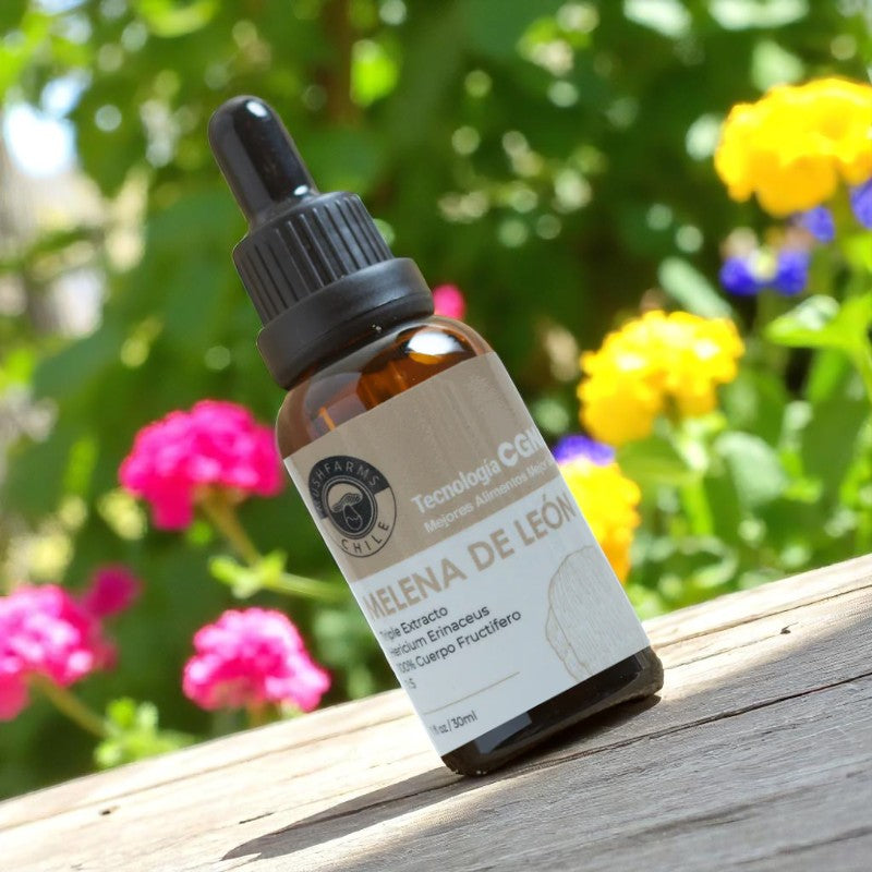 Entre los compuestos bioactivos de la Melena de León destacan las hericenonas y polisacáridos. Las erinacinas, presentes en el micelio, son potentes estimuladores de la síntesis de NGF, mientras que las hericenonas, encontradas en el cuerpo fructífero, también contribuyen a la neurogénesis. Nuestros extractos líquidos se elaboran a partir del cuerpo fructífero asegurando una alta concentración de estos compuestos beneficiosos.